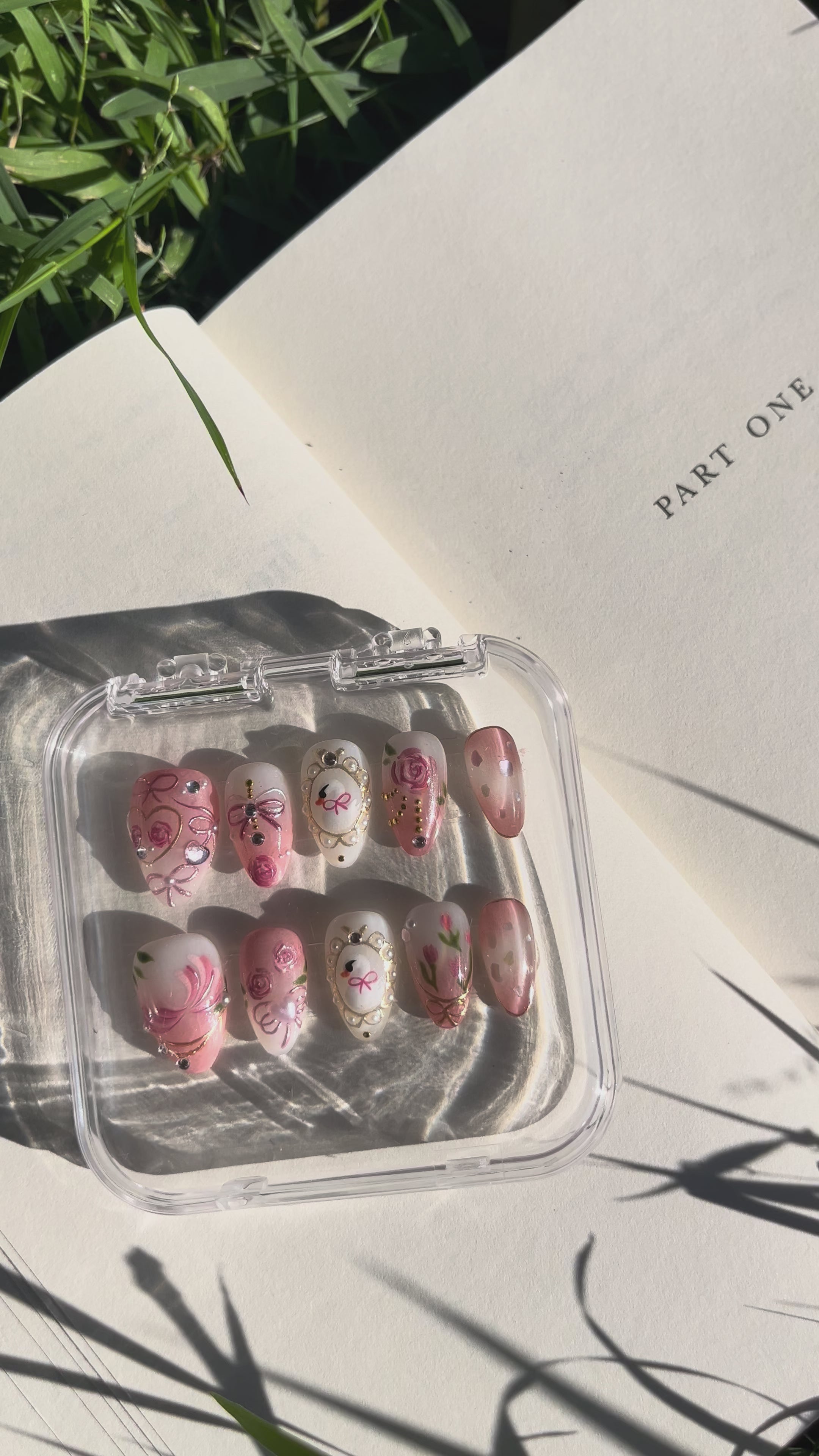 This set of press-on nails captures a charming and romantic vintage princess aesthetic, combining soft pastel pink and white tones with hand-painted roses, swans, and ribbons for a dreamy, feminine look. Each nail features intricate gold detailing, rhinestones, and pearls that add a touch of luxury and elegance. The centerpiece nails showcase graceful swan portraits framed with pearls and gems, resembling ornate antique mirrors, while others are adorned with delicate bows, floral motifs, and heart embellishments. The glossy finish enhances the 3D textures and pastel hues, making this set perfect for weddings, romantic occasions, or anyone who loves classic, elegant, and fairytale-inspired nail art.
